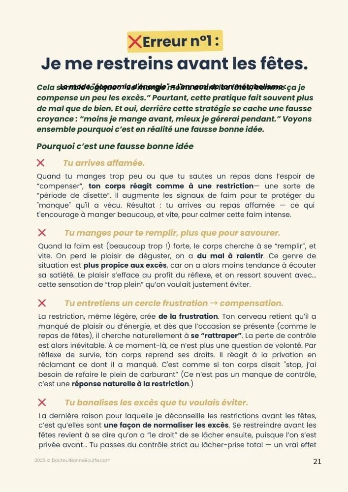 Plus de 40 pages de conseils simples & bienveillants pour t’accompagner avant, pendant et après les fêtes, même en plein rééquilibrage.