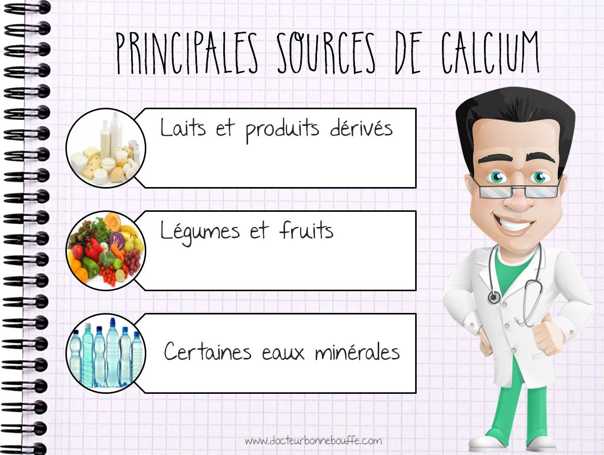 Hormis les produits laitiers, certains fruits ou légumes sont également une bonne source de calcium. Enfin, certaines eaux minérales apportent également une quantité non négligeable de calcium.