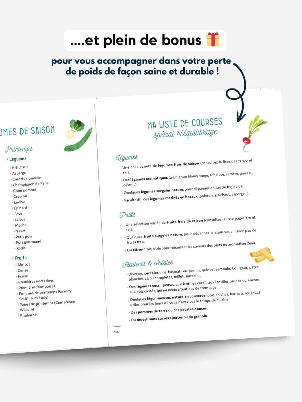 Profitez des ressources pratiques du livre pour faciliter votre rééquilibrage alimentaire et atteindre vos objectifs en toute sérénité :