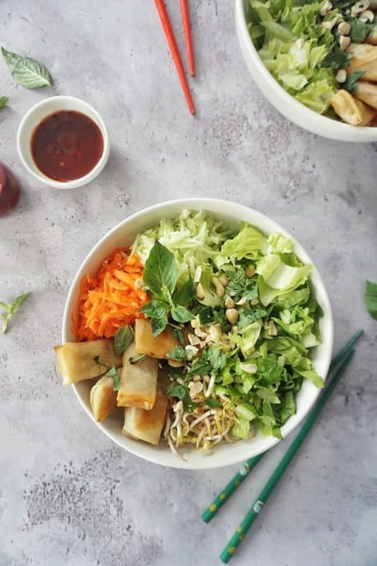 Une envie de bobun un peu plus léger ? Découvrez ma salade façon bobun, une délicieuse salade de crudités et de nems à réaliser rapidement et en toute simplicité.